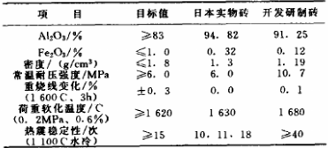 由于在氧化鋁空心球磚基質中形成由針柱狀二次莫來石構成的三維網絡結構,其雜質含量低,制品高溫性能好。其主要性能見表1。