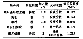表1 幾種結(jié)合劑對耐火纖維紙的增強效果