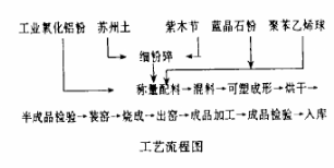 先加入聚苯乙烯球及粘土,攪拌均勻后再加入工業(yè)氧化鋁和藍(lán)晶石粉。先攪拌3分鐘,再徐徐加水?dāng)嚢?最佳加水量為28%~30%),待泥料成為均勻的可塑料后即可成形磚坯。