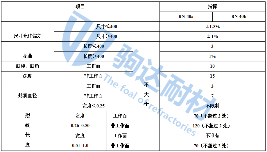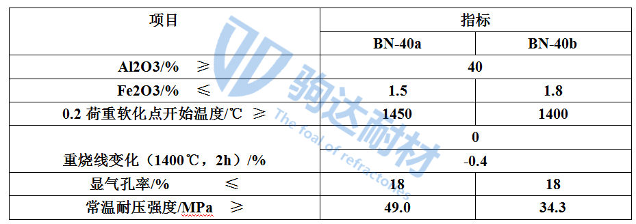 中國冶標(YB/T 5106 — 1993)將粘土質(zhì)耐火磚按理化指標分為N-1、N-2a、N-2b、N-3a、N-3b、N-4、N-5、N-6八種牌號,其理化指標見表1所列。