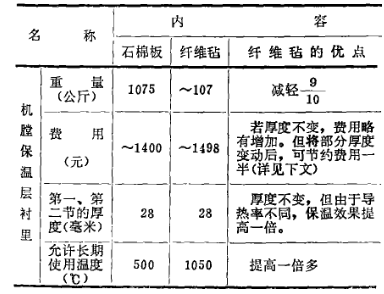 一、采用硅酸鋁纖維軟氈代替石棉板,這兩種材料的主要參數(shù)及價(jià)格列于表4: